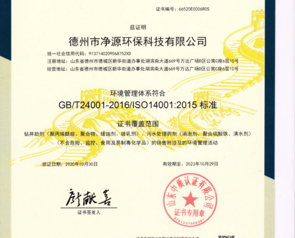 我司取得環(huán)境管理體系認(rèn)證證書(shū)