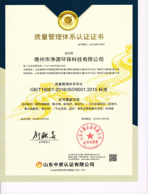 我司取得質(zhì)量管理體系認(rèn)證證書