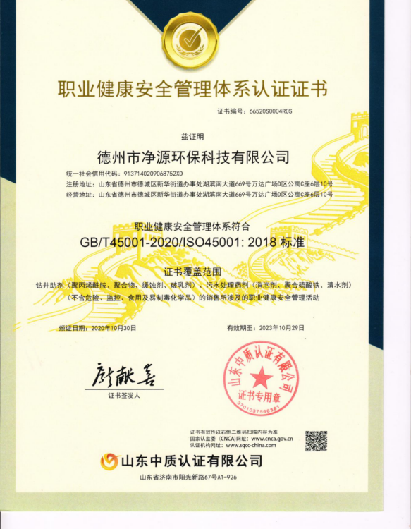 我司取得職業(yè)健康安全管理體系認(rèn)證證書